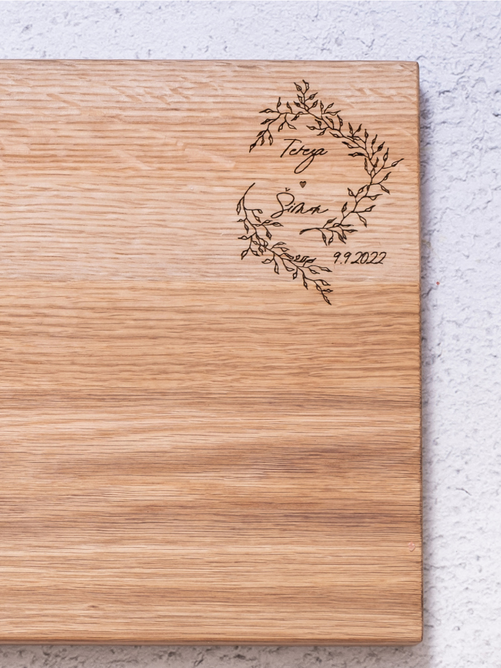 Nějaký originální dárek jen pro ně. Něco, co připomíná jejich svatební den, něco na vždy a hlavně ne kýč? To je oříšek s kterým jsme se potýkali i my a díky tomu se zrodila myšlenka na výrobu designových prkének na míru. Dřevěné prkénko s monogramy/ jménem je praktické, nezapomenete na datum výročí svatby, je přírodní a líbí se moc:)